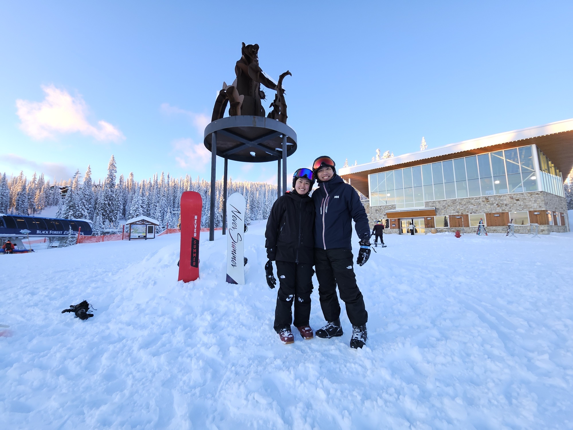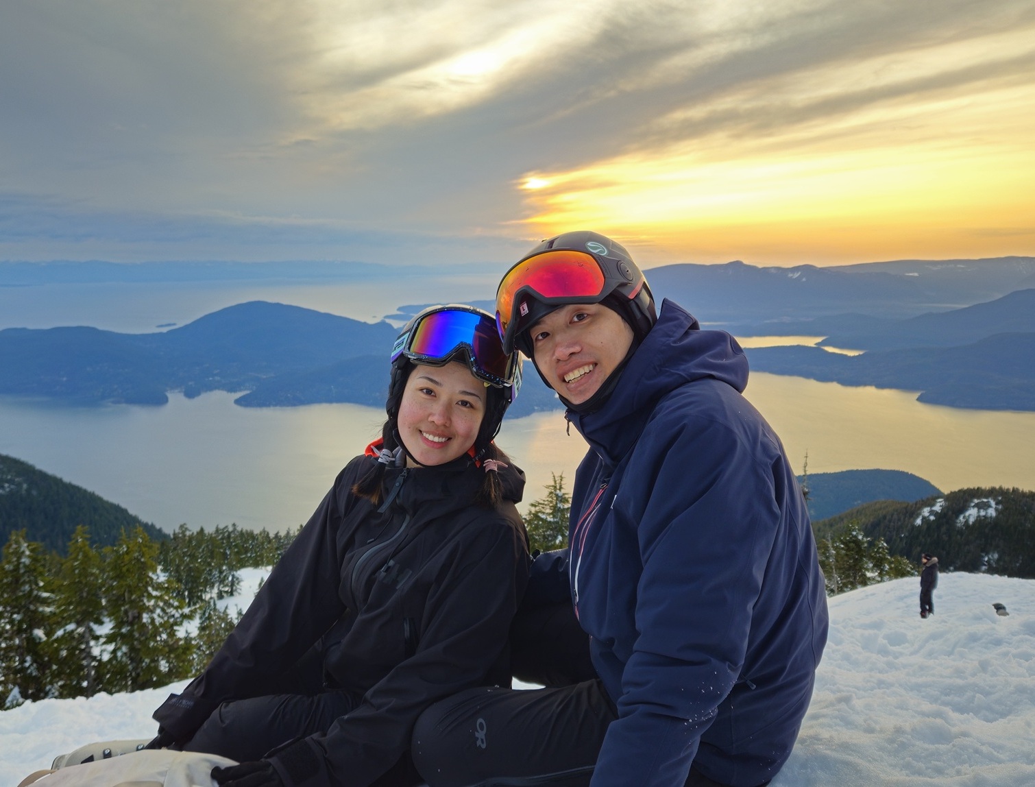 We love the outdoors: skiing and snowboarding (and teaching it), exploring nature, camping, and picking blueberries in the summer.